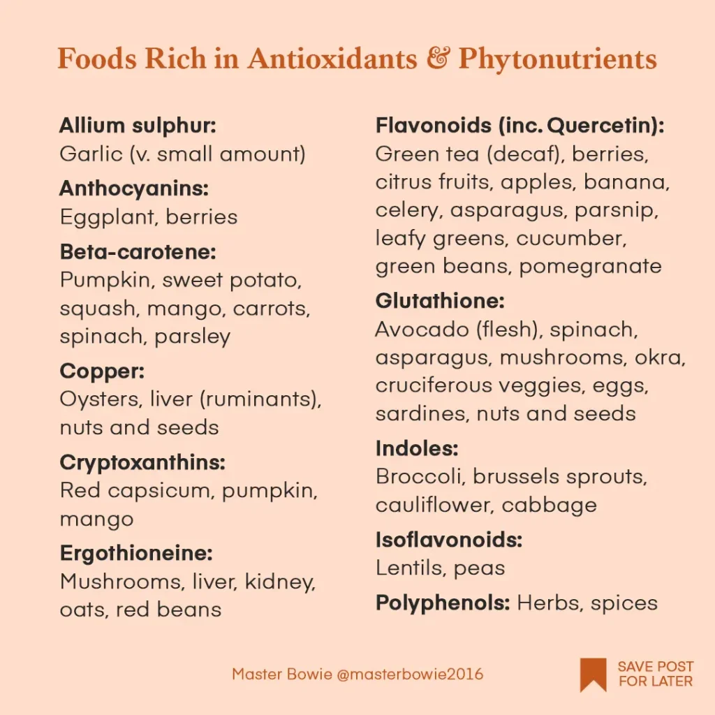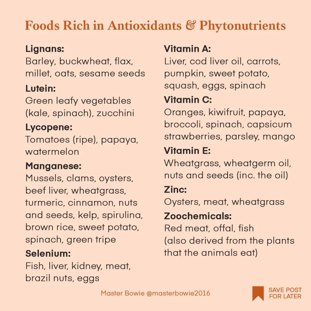 - Feed a variety diet rich in antioxidants, fibres,and phytonutrients. As dogs age, their immune system weakens,making them more susceptible to infectionsand diseases. Support them by feeding foodsrich in antioxidants and phytonutrients. Antioxidants neutralise free radicals andreduce cellular damage and oxidative stress(linked to cancer, heart disease and cognitivedecline). Phytonutrients (phytochemicals)are natural compounds found in plants thatgive plants their colours and protect them fromenvironmental stressors. Phytonutrients canact as antioxidants, as well as regulate cellgrowth and support the immune system.