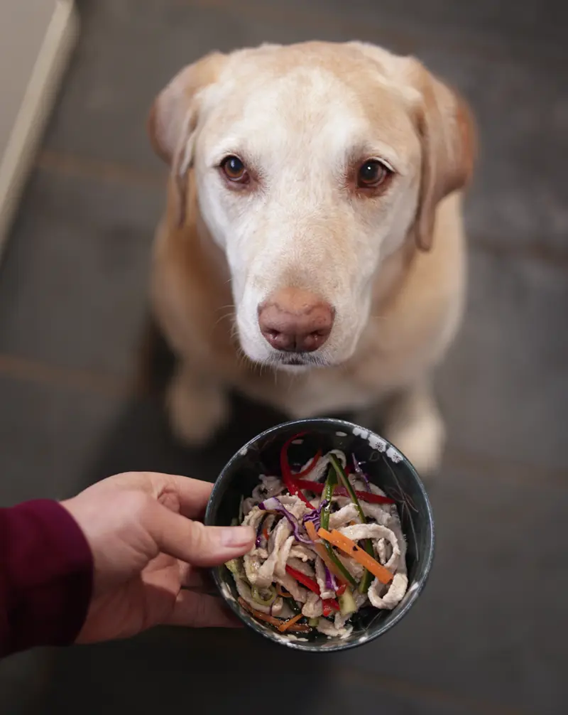 Healthy, nutritious, and packed with flavour, these Asian-inspired meat noodles are made for you and your pup to enjoy together. Combining lean meat noodles with a medley of fresh, colourful vegetables, this dish can be served as a complete meal for your dog or a tasty treat or meal topper. Because sharing lunch with your best friend just makes it better!