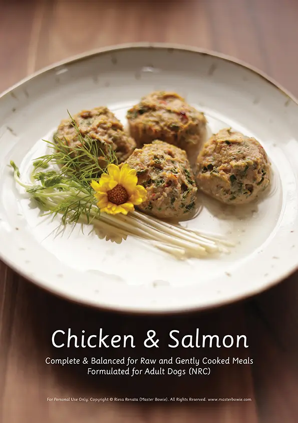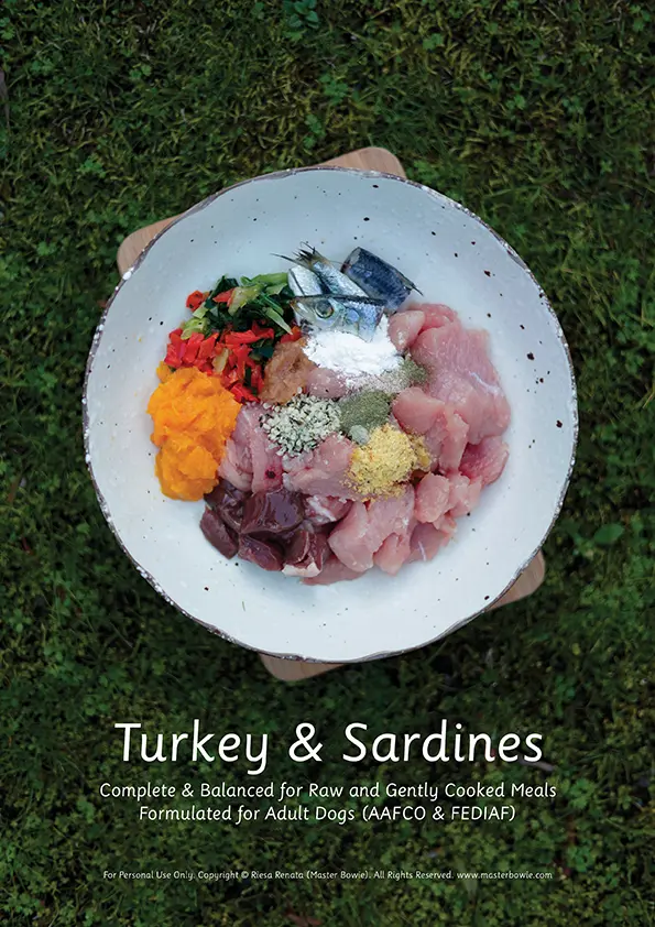 The “Bundle Recipe Packs” contain 2 x Complete & Balanced Meal Recipes using beef as the main protein source, 2 x Complete & Balanced Meal Recipes using turkey and fish as the main protein source, 2 x Complete & Balanced Meal Recipes using chicken as the main protein source, along with 3 x Bone Broth Recipes using beef, fish and chicken, Eggshell Powder and Chicken Feet Broth & Mousse Recipes. These recipes are suitable for adult dogs fed a raw food or gently cooked diet.