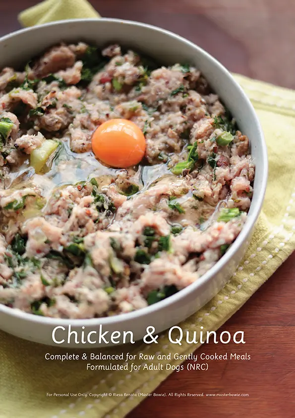 6 x Complete & Balanced Recipes (Raw & Cooked) for Adult Dogs with 4 Protein Choices (Beef, Chicken, Turkey & Fish), 3 x Bone Broth Recipes, Plus Eggshell Powder and Chicken Feet Broth & Mousse Recipes